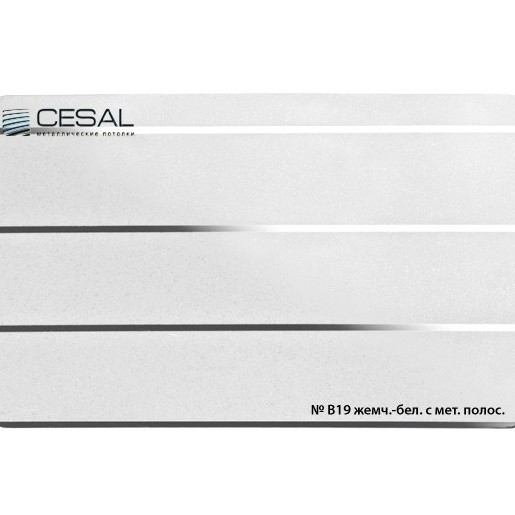 Потолок реечный Cesal B19 Жемчужно-белый с металлической полосой Standart 150х4000х0,55 мм можно купить в интернет-магазине «МВ Трейд» по низкой цене. На сайте представлена подробная информация о товаре: размеры, фото, инструкция по монтажу, технические характеристики, информация о производителе и бренде.