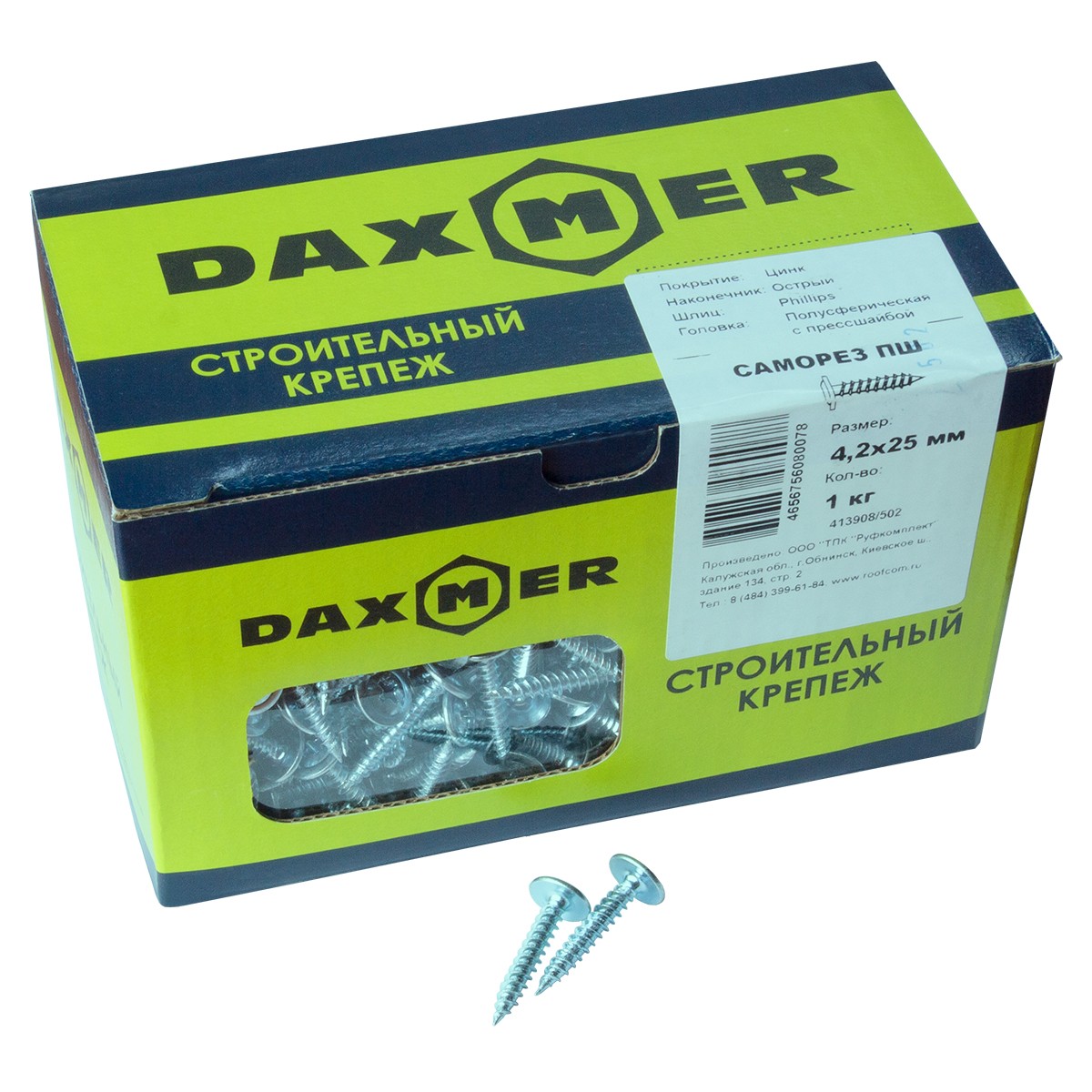 Саморезы Daxmer Pro по металлу оцинкованные с прессшайбой острые 4,2х25 мм