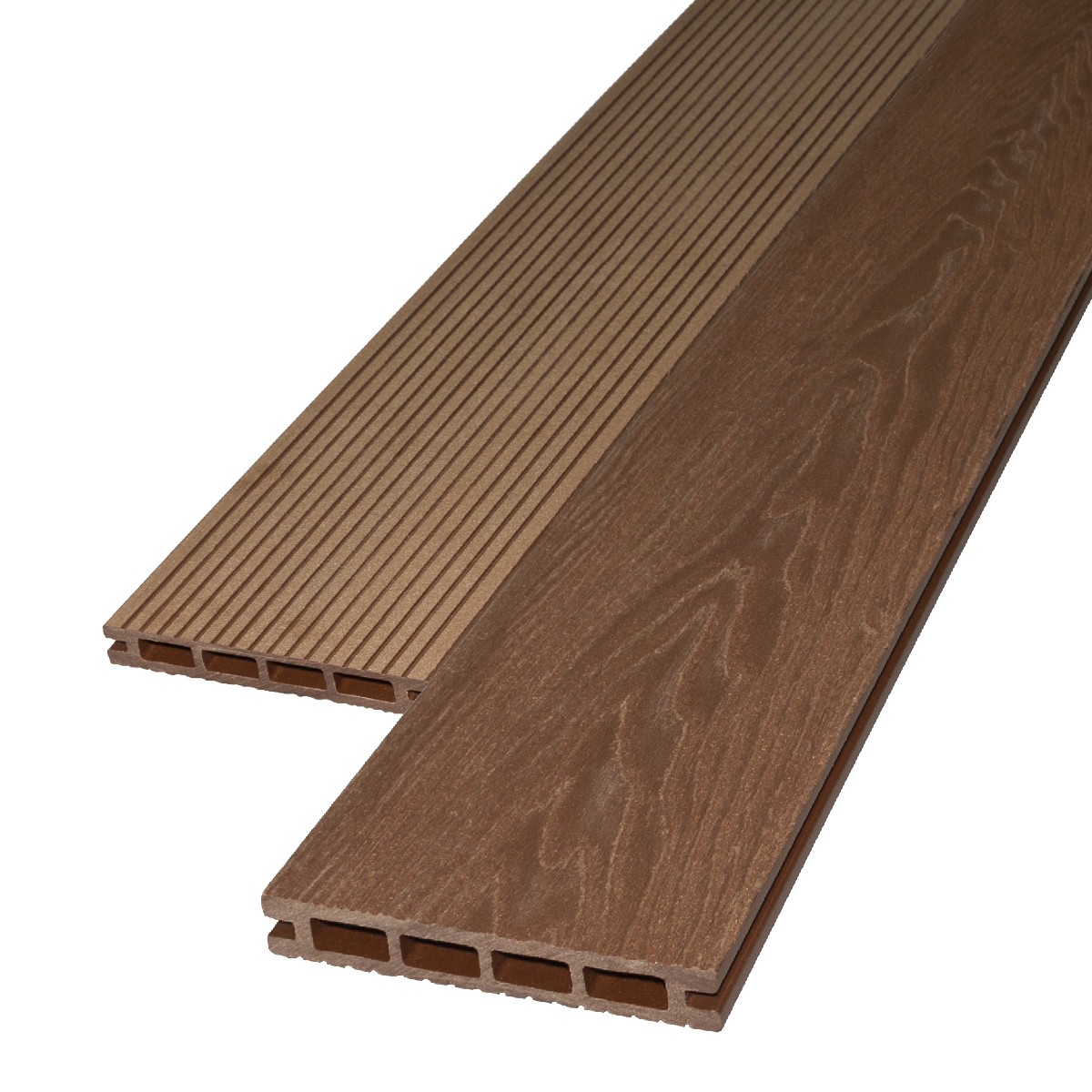 цвет по всей глубине изделия. Небольшие цветовые отклонения (полтона-тон) и наличие древесных волокон на поверхности изделия подчеркивают имитацию натуральной древесины и не являются дефектом. Все покрытия, со временем подвергаются атмосферному воздействию. В первые месяцы, после установки изделие из ДПК стабилизируется и приобретает более естественный, светлый оттенок, по сравнению с первоначальным цветом. Это связано с наличием в составе изделия натуральной древесины, которая поглощает воду и подвергается воздействию ультрафиолетовых лучей. Как только ДПК пройдет этап первоначальной стабилизации, могут наблюдаться минимальные изменения цвета, что является нормальным процессом для любого материала.