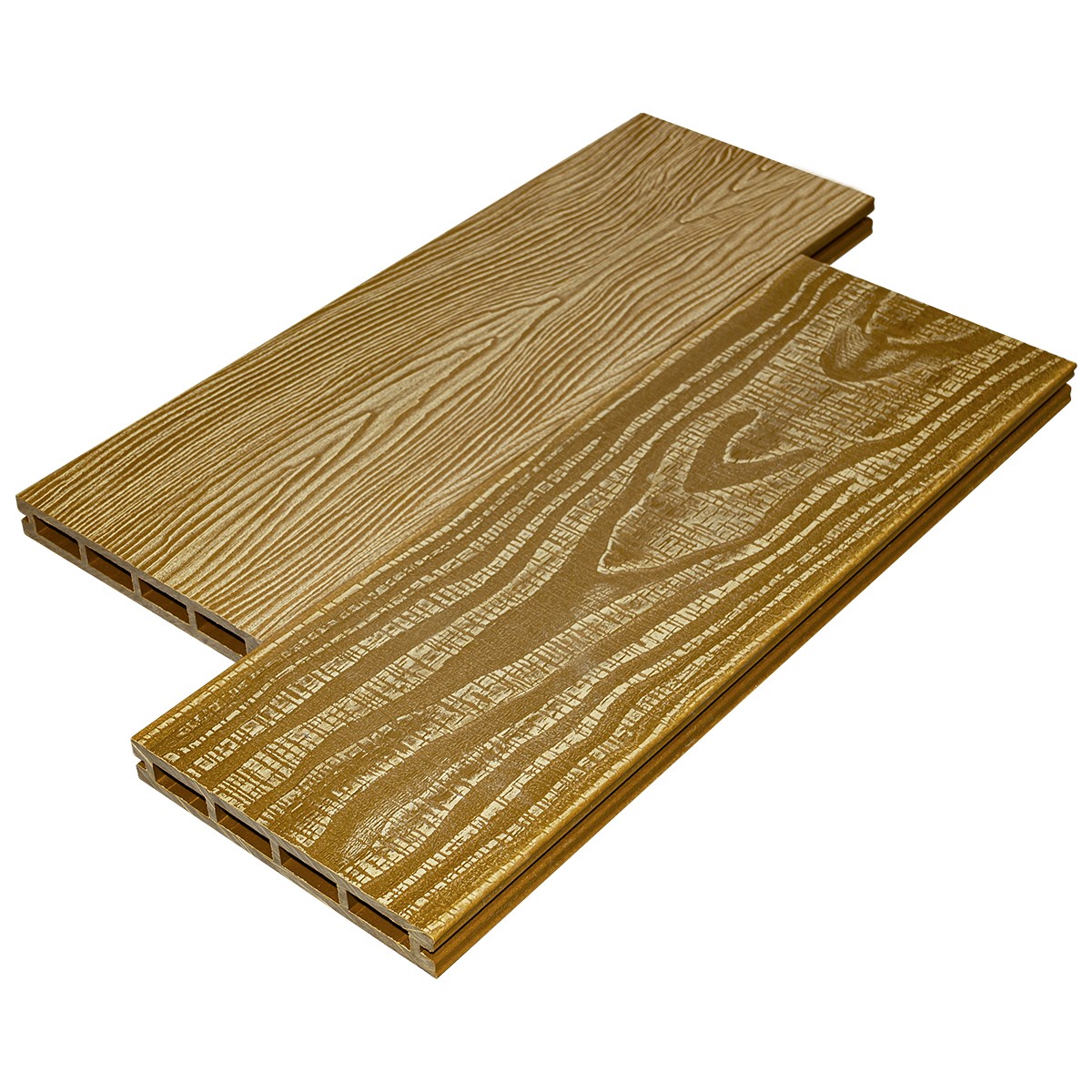 цвет по всей глубине изделия. Небольшие цветовые отклонения (полтона-тон) и наличие древесных волокон на поверхности изделия подчеркивают имитацию натуральной древесины и не являются дефектом. Все покрытия, со временем подвергаются атмосферному воздействию. В первые месяцы, после установки изделие из ДПК стабилизируется и приобретает более естественный, светлый оттенок, по сравнению с первоначальным цветом. Это связано с наличием в составе изделия натуральной древесины, которая поглощает воду и подвергается воздействию ультрафиолетовых лучей. Как только ДПК пройдет этап первоначальной стабилизации, могут наблюдаться минимальные изменения цвета, что является нормальным процессом для любого материала.