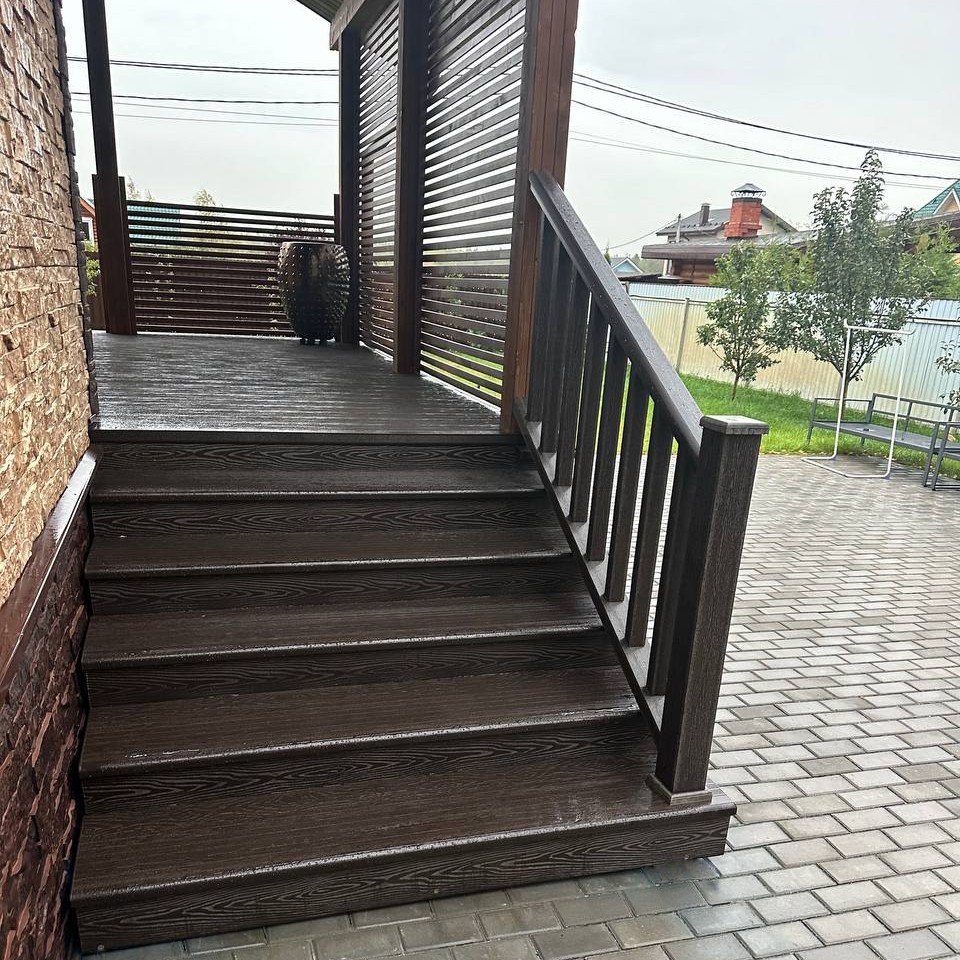 Изделия из ДПК изготовлены из практичного и качественного материала - древесно-полимерного композита, при создании которого используется собственная рецептура и самые современные наработки в области переработки полимеров.