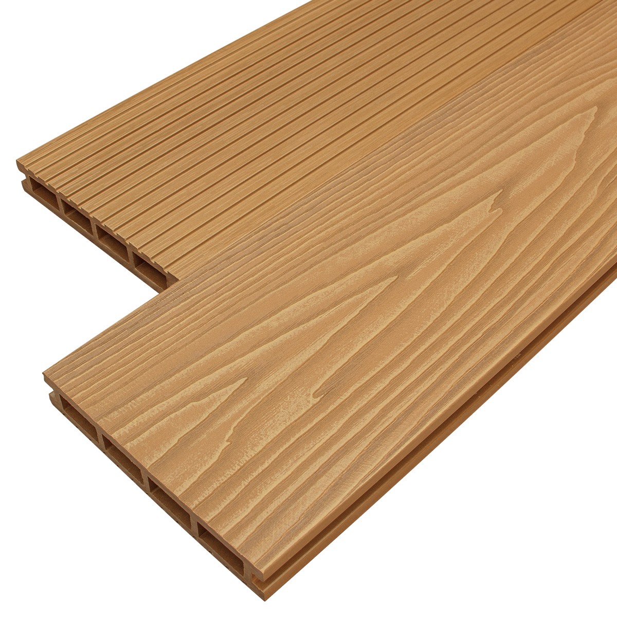 цвет по всей глубине изделия. Небольшие цветовые отклонения (полтона-тон) и наличие древесных волокон на поверхности изделия подчеркивают имитацию натуральной древесины и не являются дефектом. Все покрытия, со временем подвергаются атмосферному воздействию. В первые месяцы, после установки изделие из ДПК стабилизируется и приобретает более естественный, светлый оттенок, по сравнению с первоначальным цветом. Это связано с наличием в составе изделия натуральной древесины, которая поглощает воду и подвергается воздействию ультрафиолетовых лучей. Как только ДПК пройдет этап первоначальной стабилизации, могут наблюдаться минимальные изменения цвета, что является нормальным процессом для любого материала.
